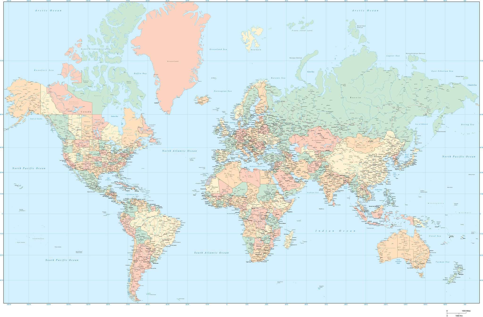 World Map with US States and Canadian Provinces Adobe Illustrator